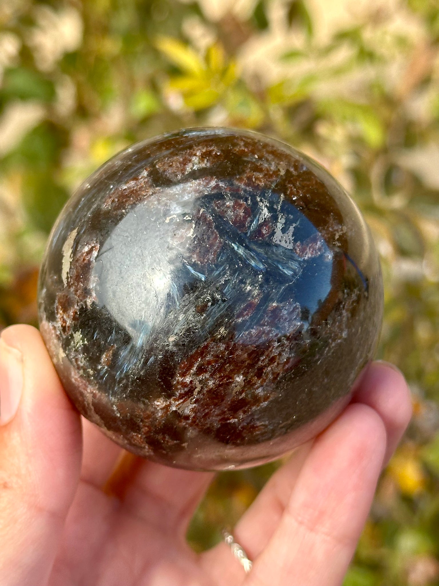 Arfvedsonite's metaphysical properties include enhancing intuition and psychic abilities, facilitating spiritual growth by clearing the mind and connecting one to higher realms, and promoting mental and emotional healing. It is also used for manifestation, organizing thoughts, and protecting against negative energy. The stone is associated with the Third Eye and Crown Chakras, and its grounding properties can be balanced with other crystals to prevent feelings of being ungrounded.