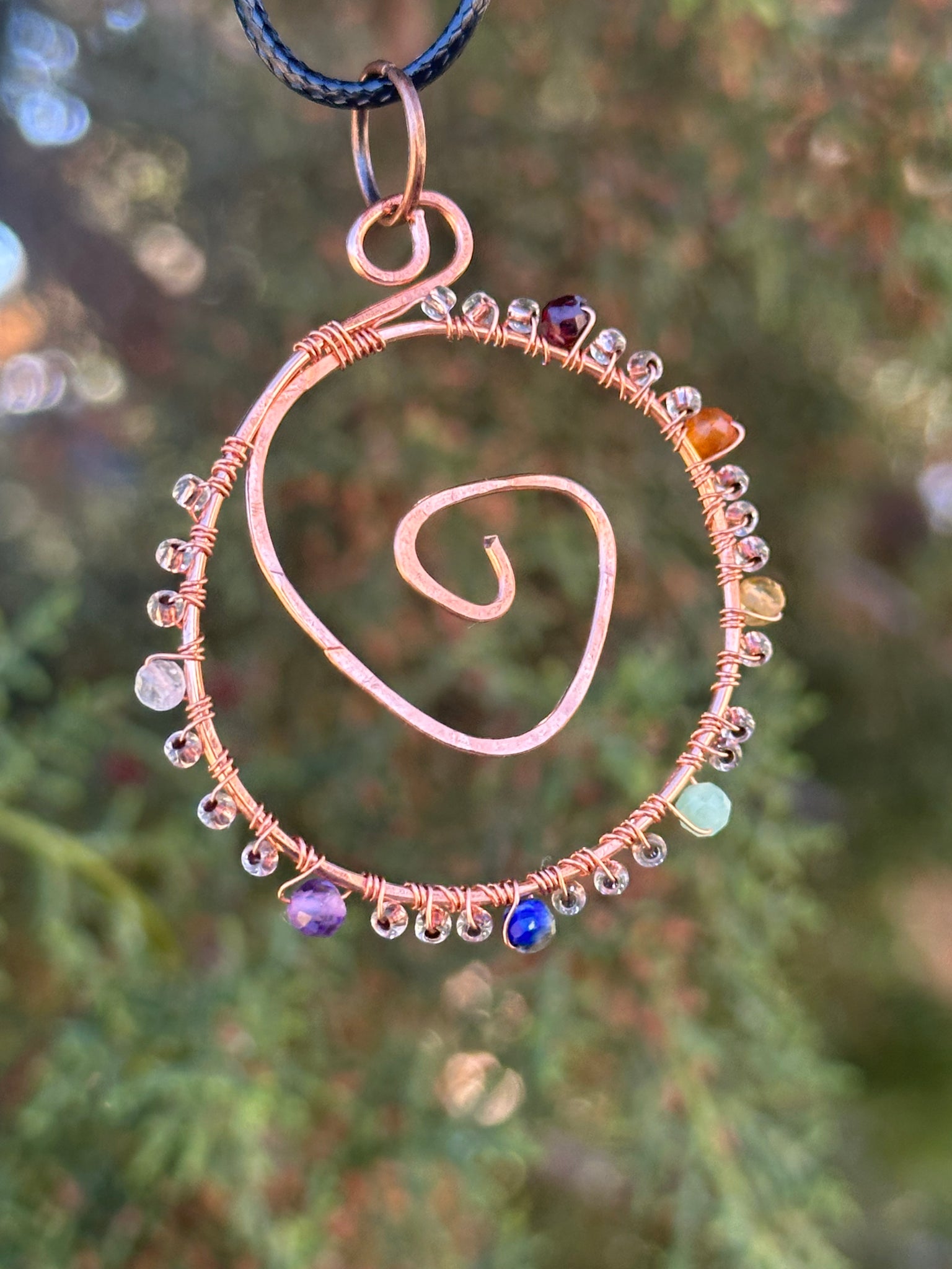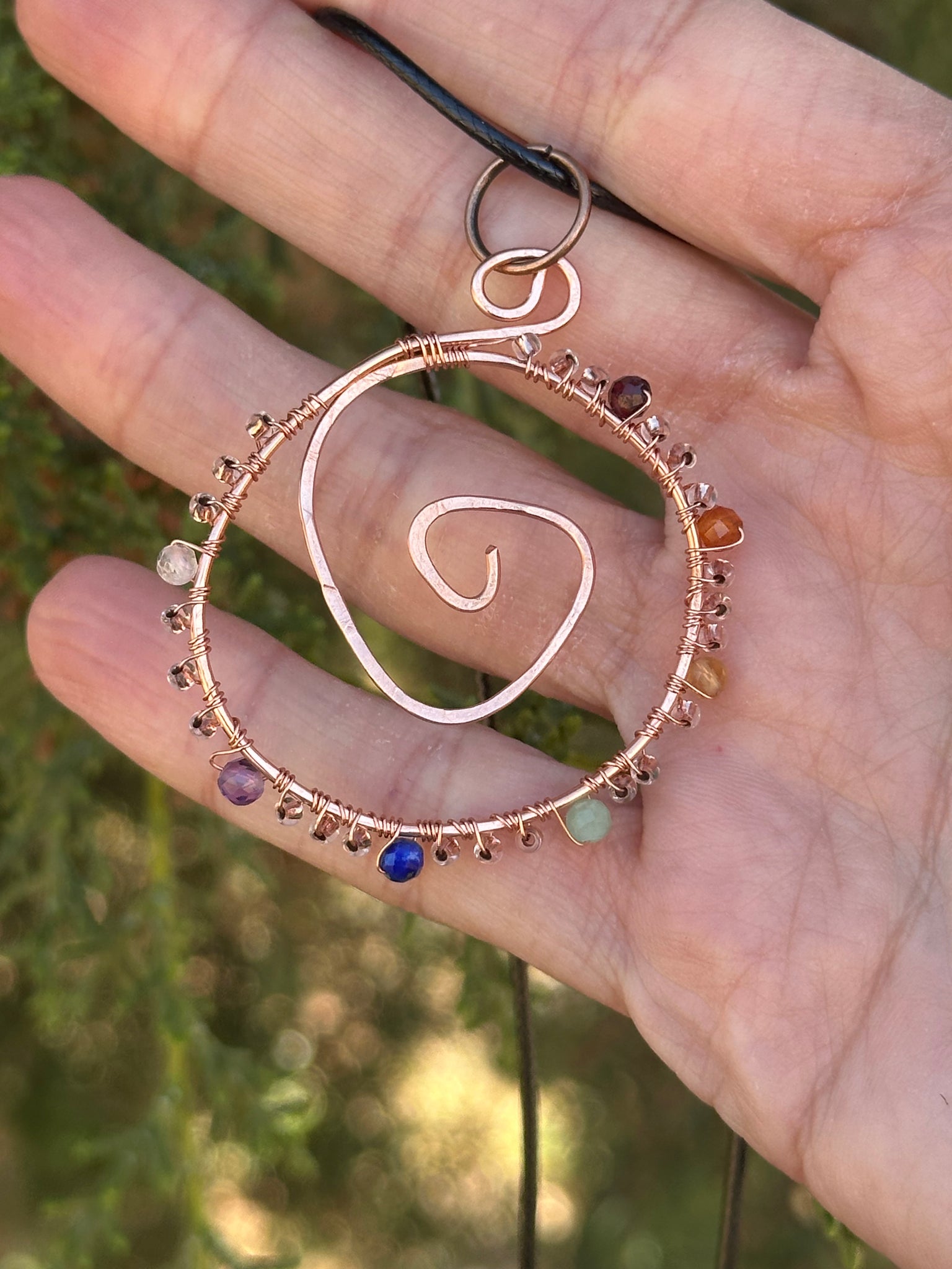 made with garnet, carnelian, citrine, green aventurine, lapis lazuli, amethyst, quartz gem accents