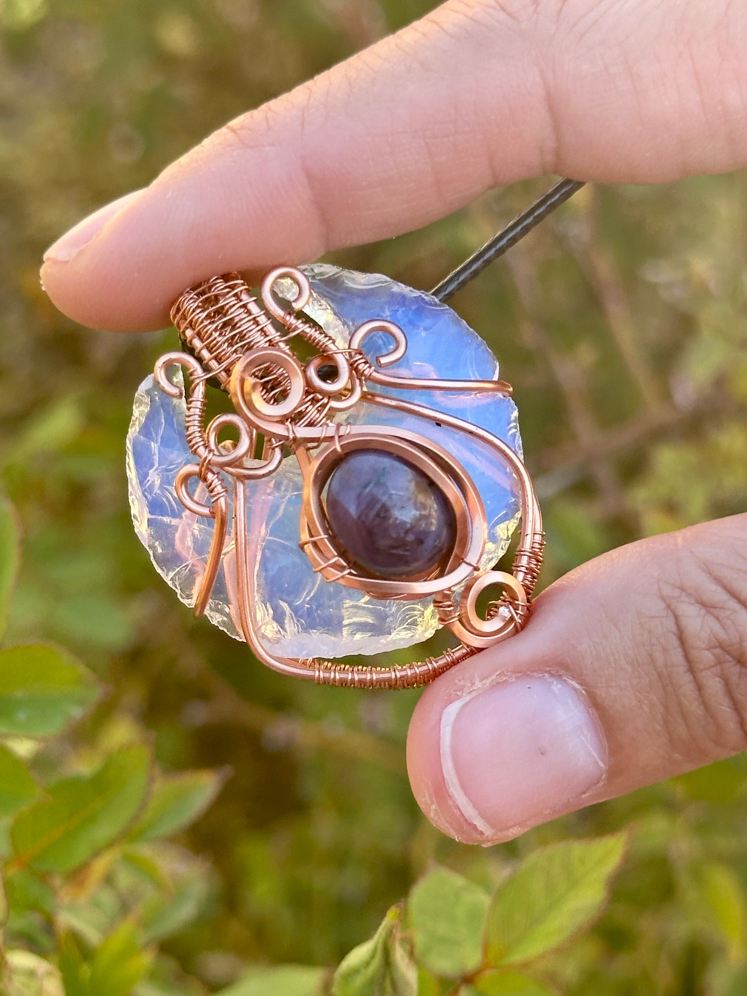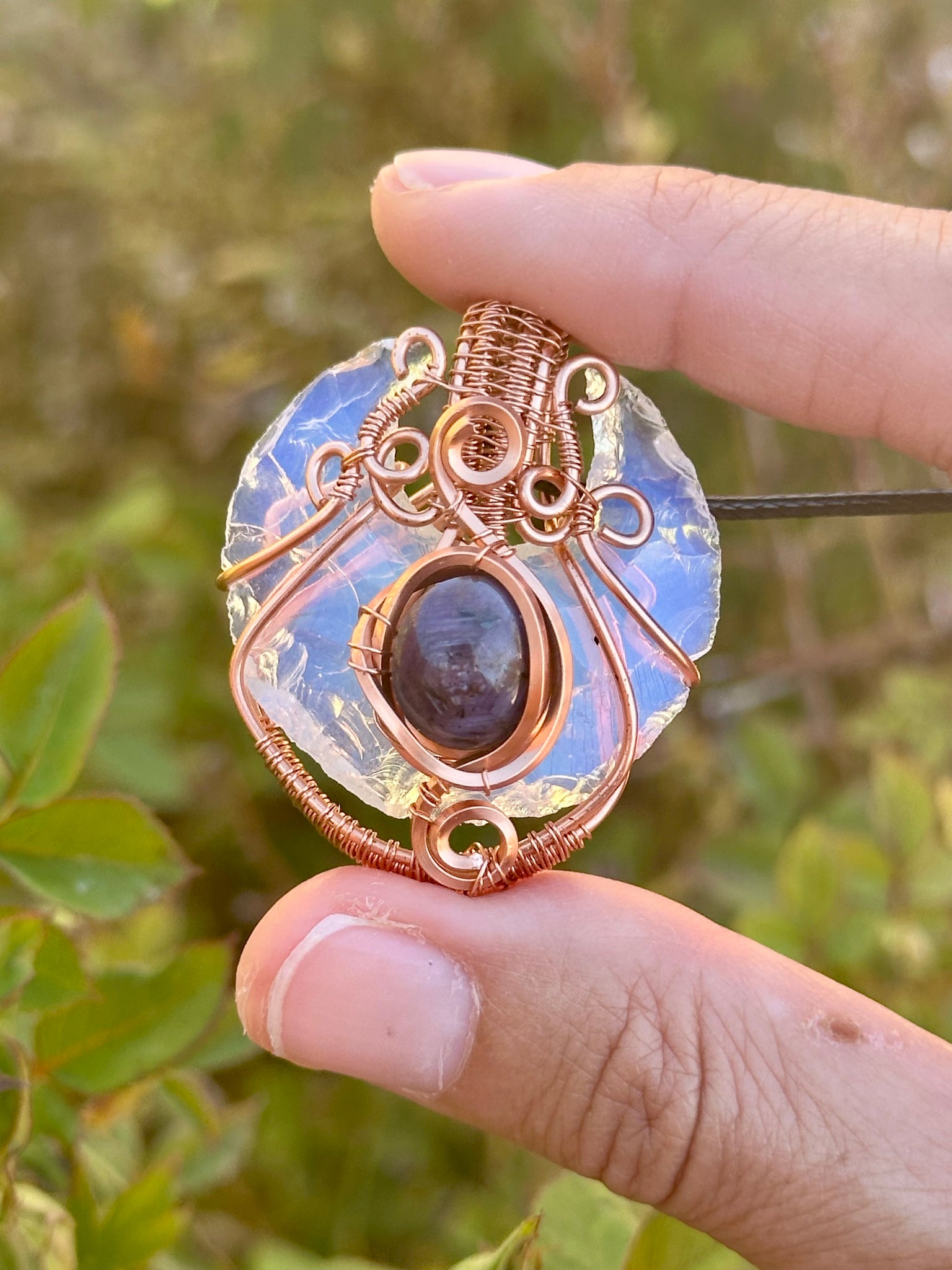 Opalite a man-made stone that promotes smooth transitions, emotional clarity, and inner peace. It enhances communication and intuition.
